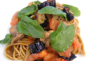 加入切好的番茄,并放入茄子,加入炒面汁,翻炒。