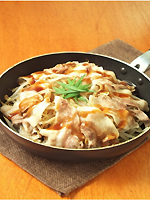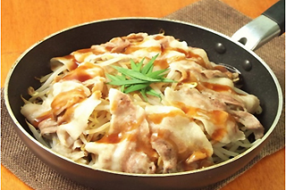 打开锅盖,上面浇上豬排醬汁即可食用。